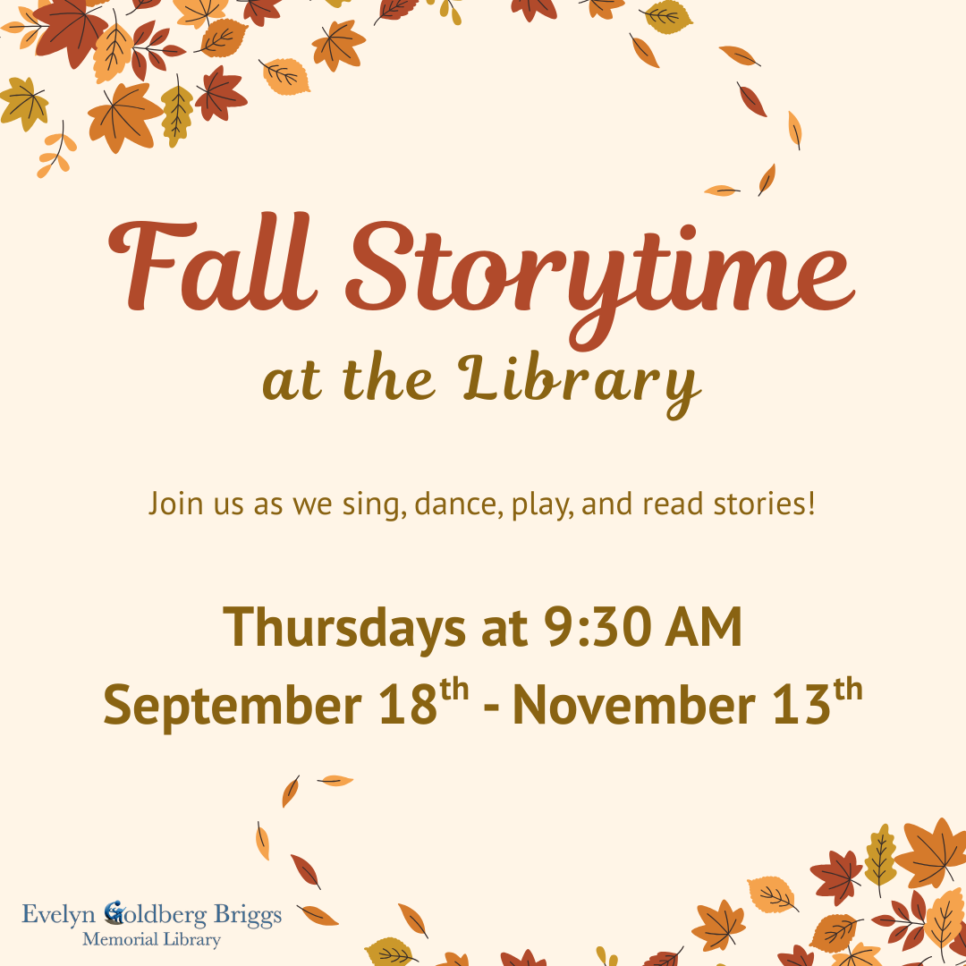 Join us for Fall Storytime starting Thursdays, September 18th - November 13th at 9:30 AM!